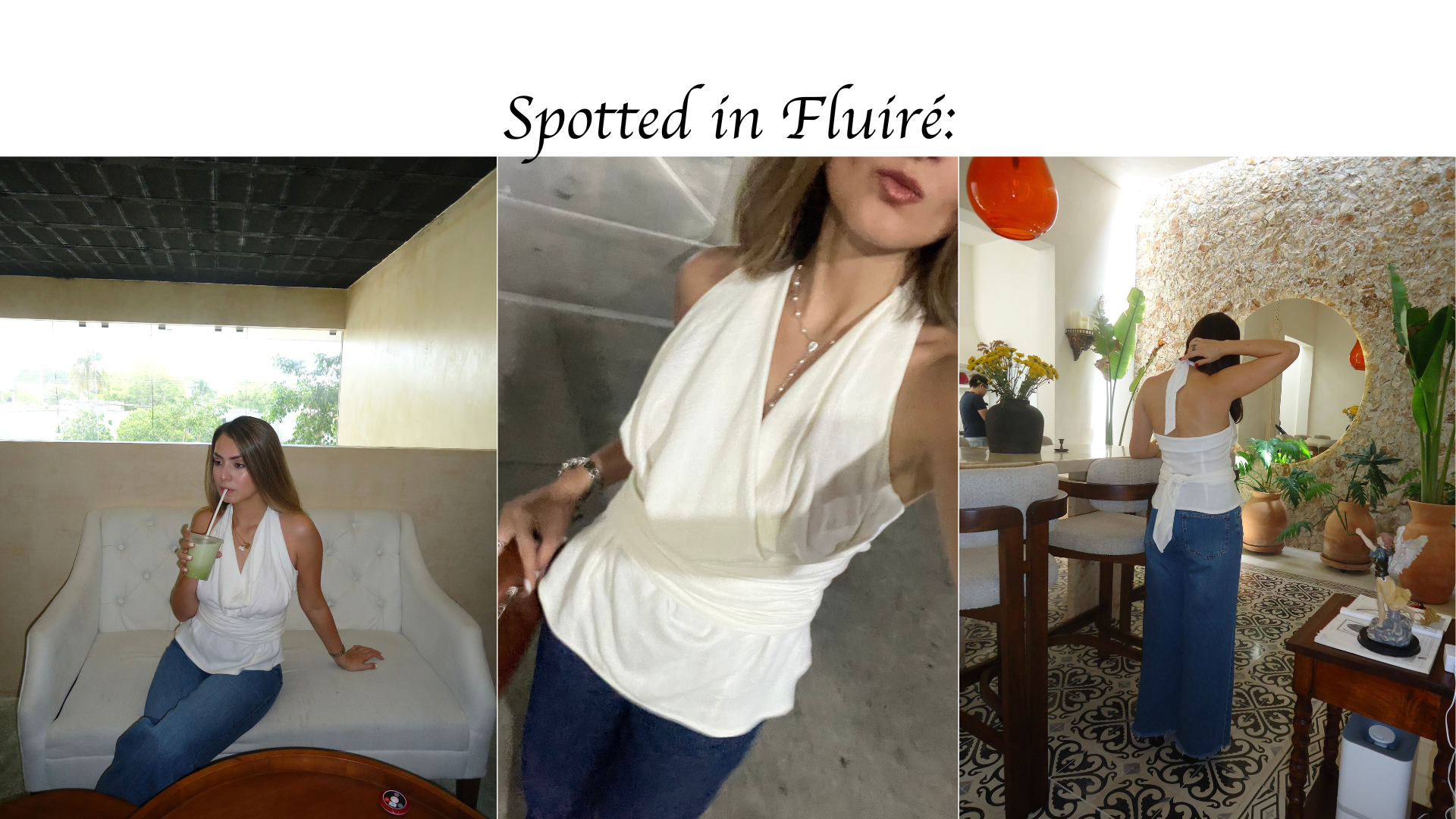 Blusa halter con cuello drapeado, caída fluida y espalda descubierta